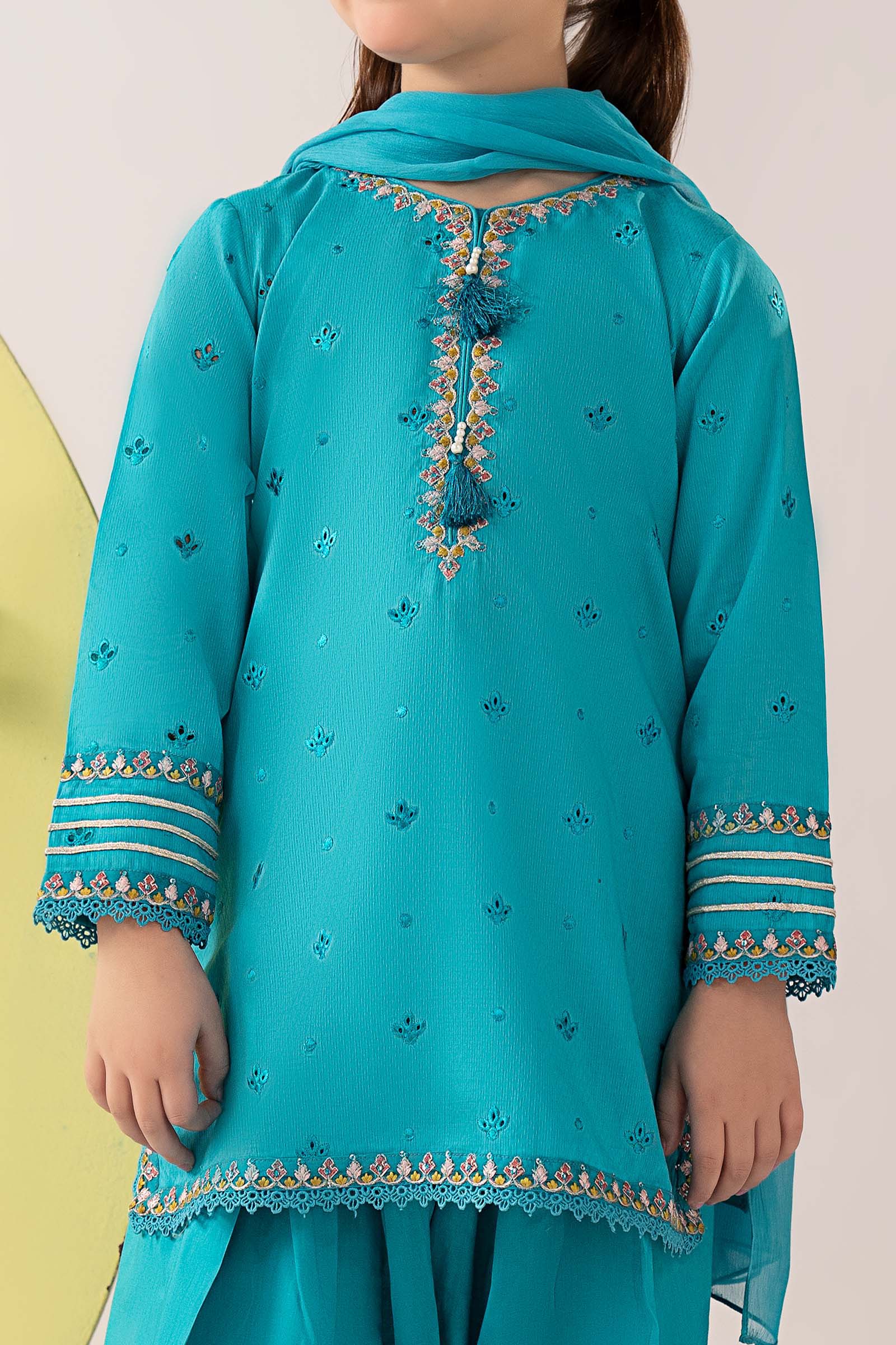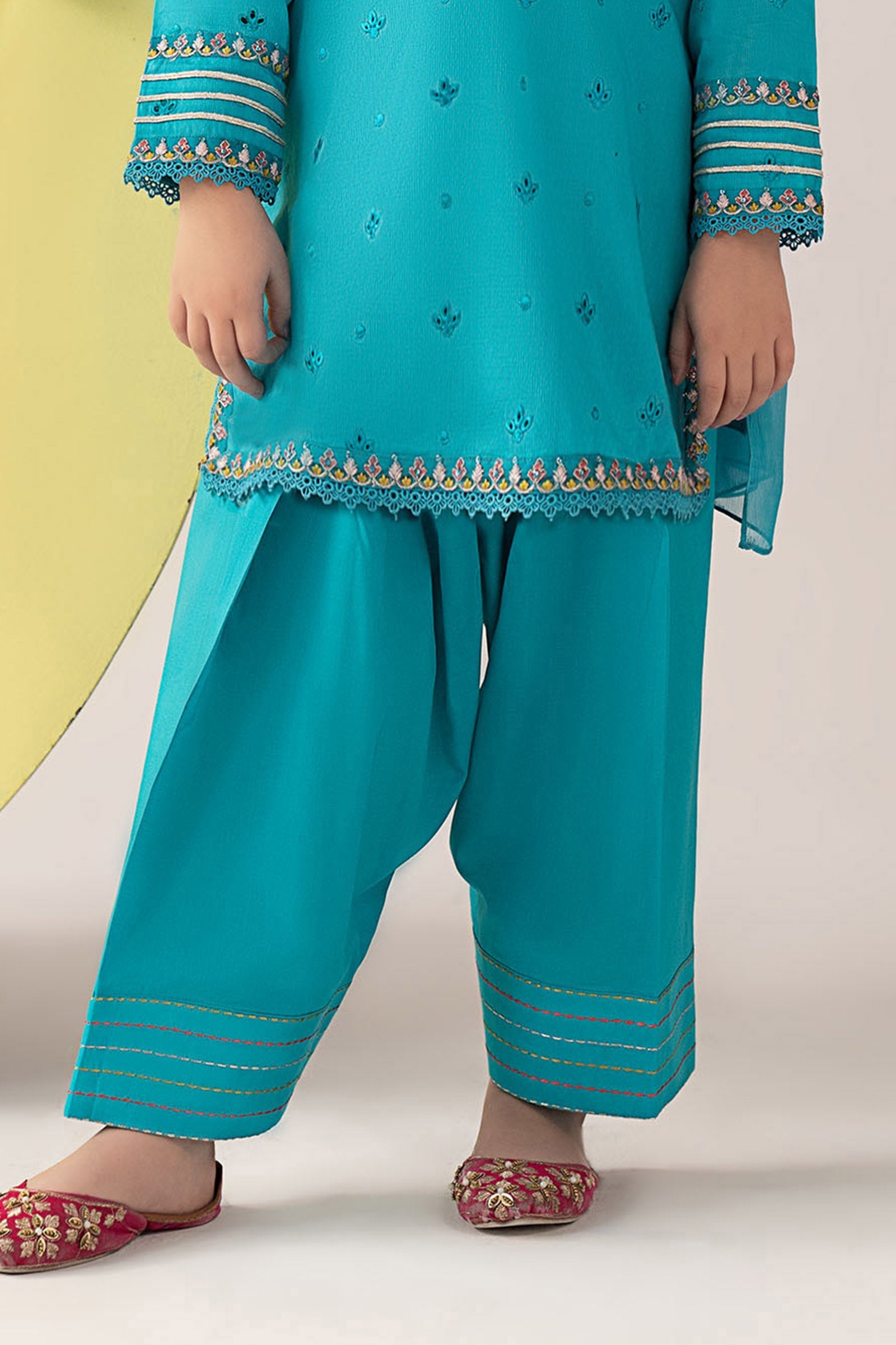 All laces used for finishing of the stitched outfit especially the dupatta or trousers may vary from the shoot.