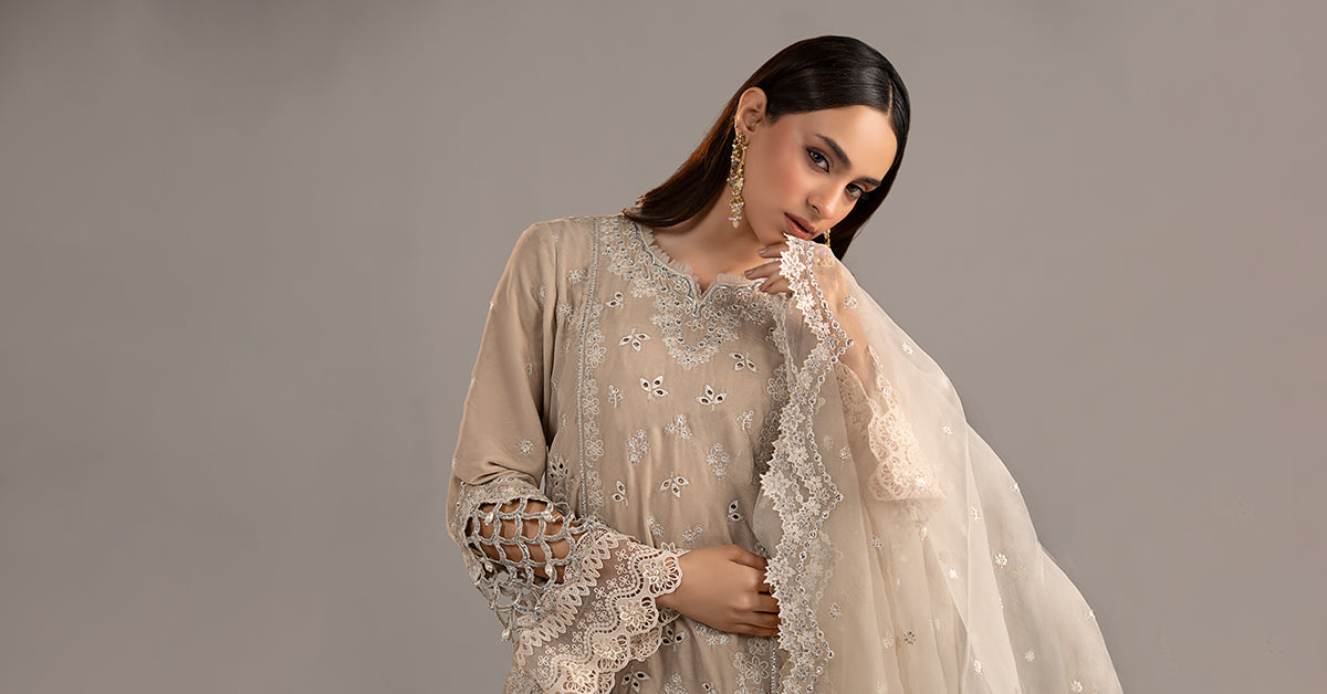 Kavya Embroidered Border With Pearl Drops Detailing