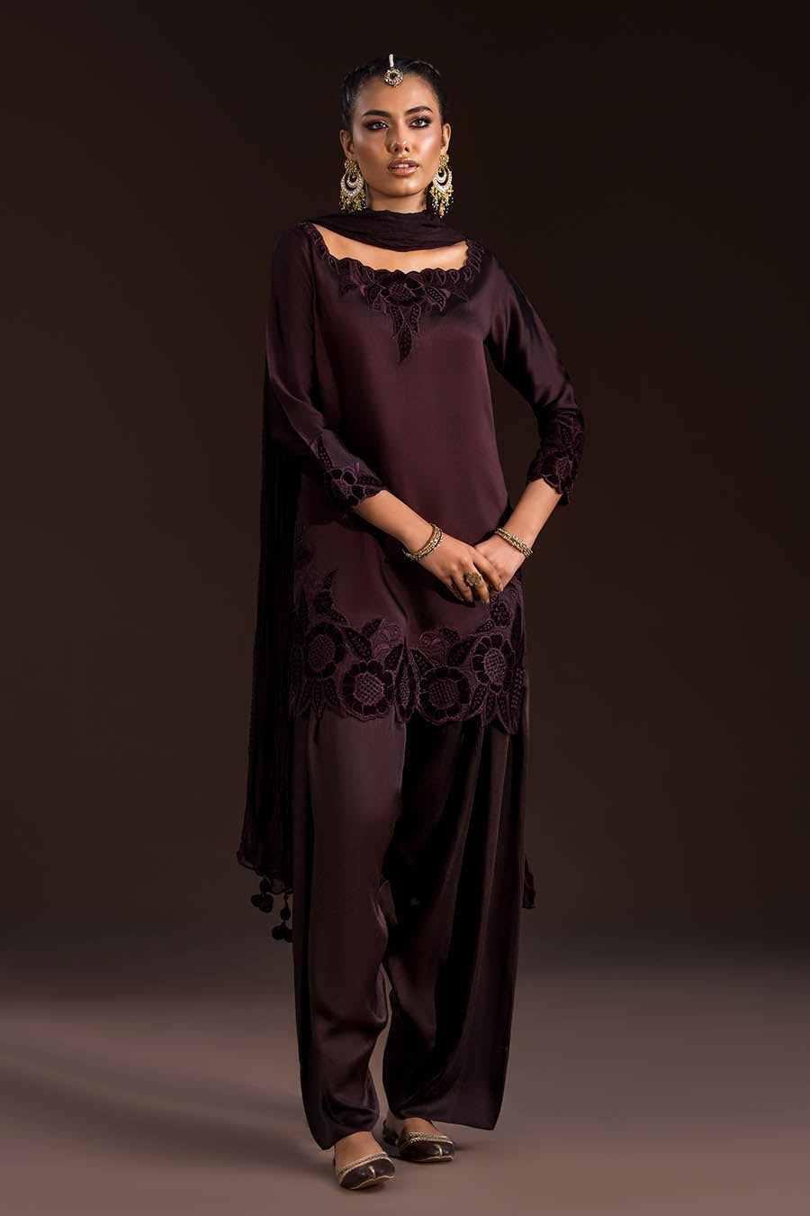 All laces used for finishing of the stitched outfit especially the dupatta or trousers may vary from the shoot.