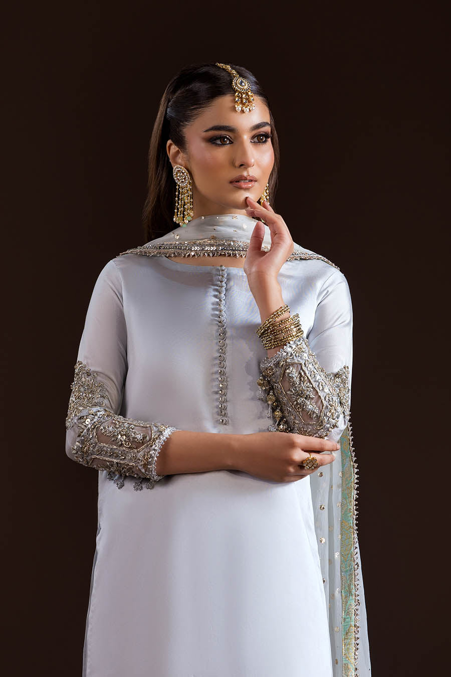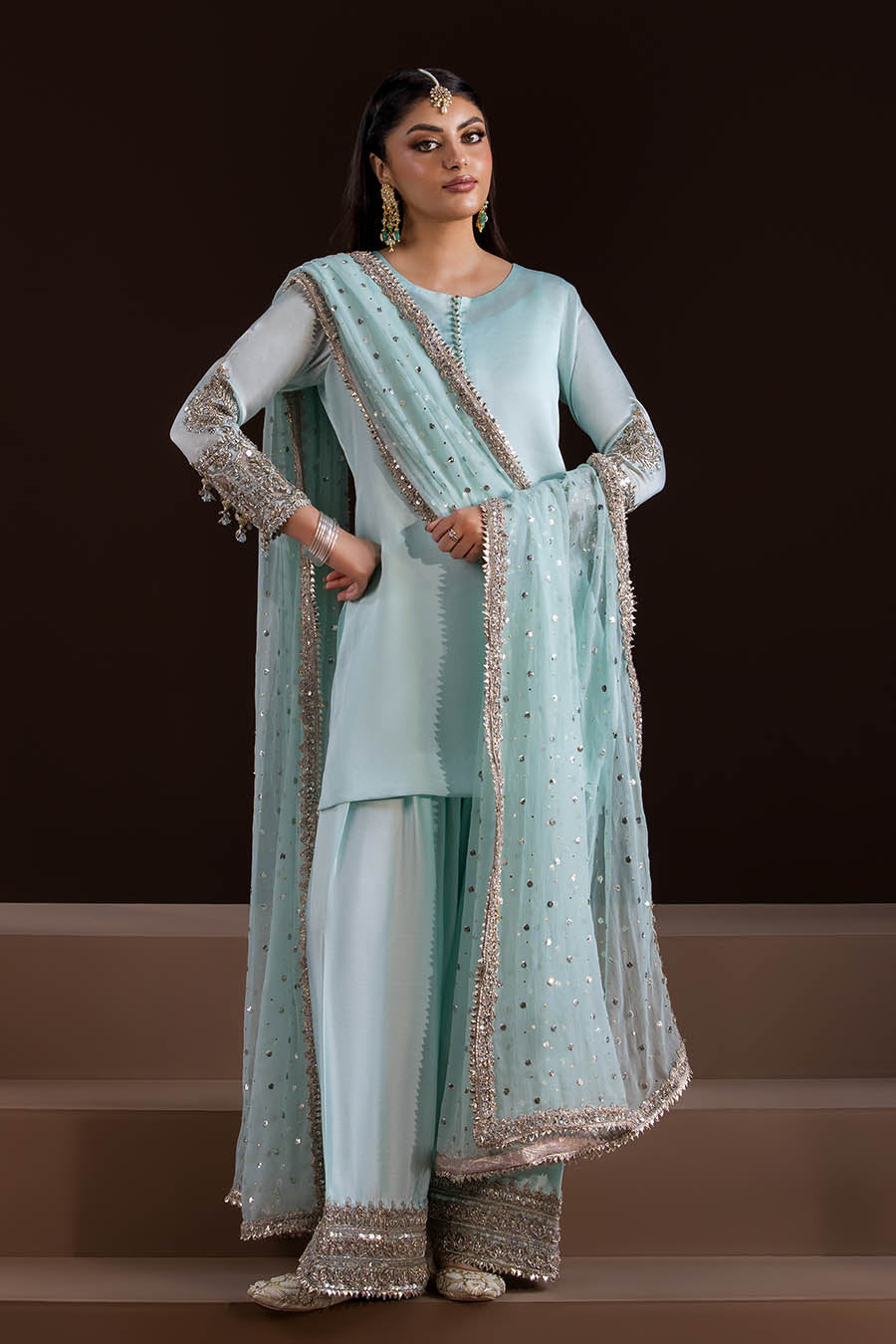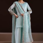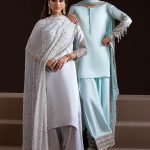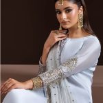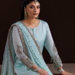All laces used for finishing of the stitched outfit especially the dupatta or trousers may vary from the shoot.